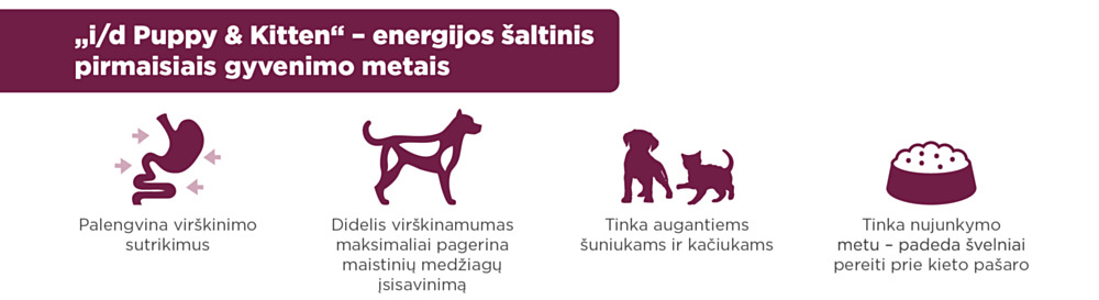 Šuniukai ir kačiukai yra labiau pažeidžiami nei suaugę gyvūnai. Nujunkomą arba po ūminių ligų sveikstantį augintinį labai svarbu tinkamai šerti nuo pat pirmos dienos – tai padės atgauti jėgas ir gyvybingumą.