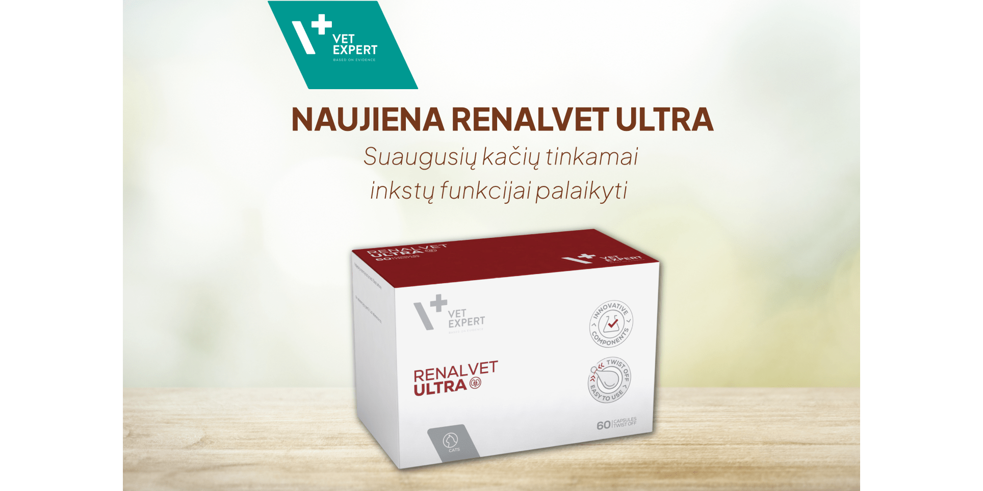 Preparatas skirtas suaugusioms katėms, padedantis palaikyti tinkamą inkstų funkciją.